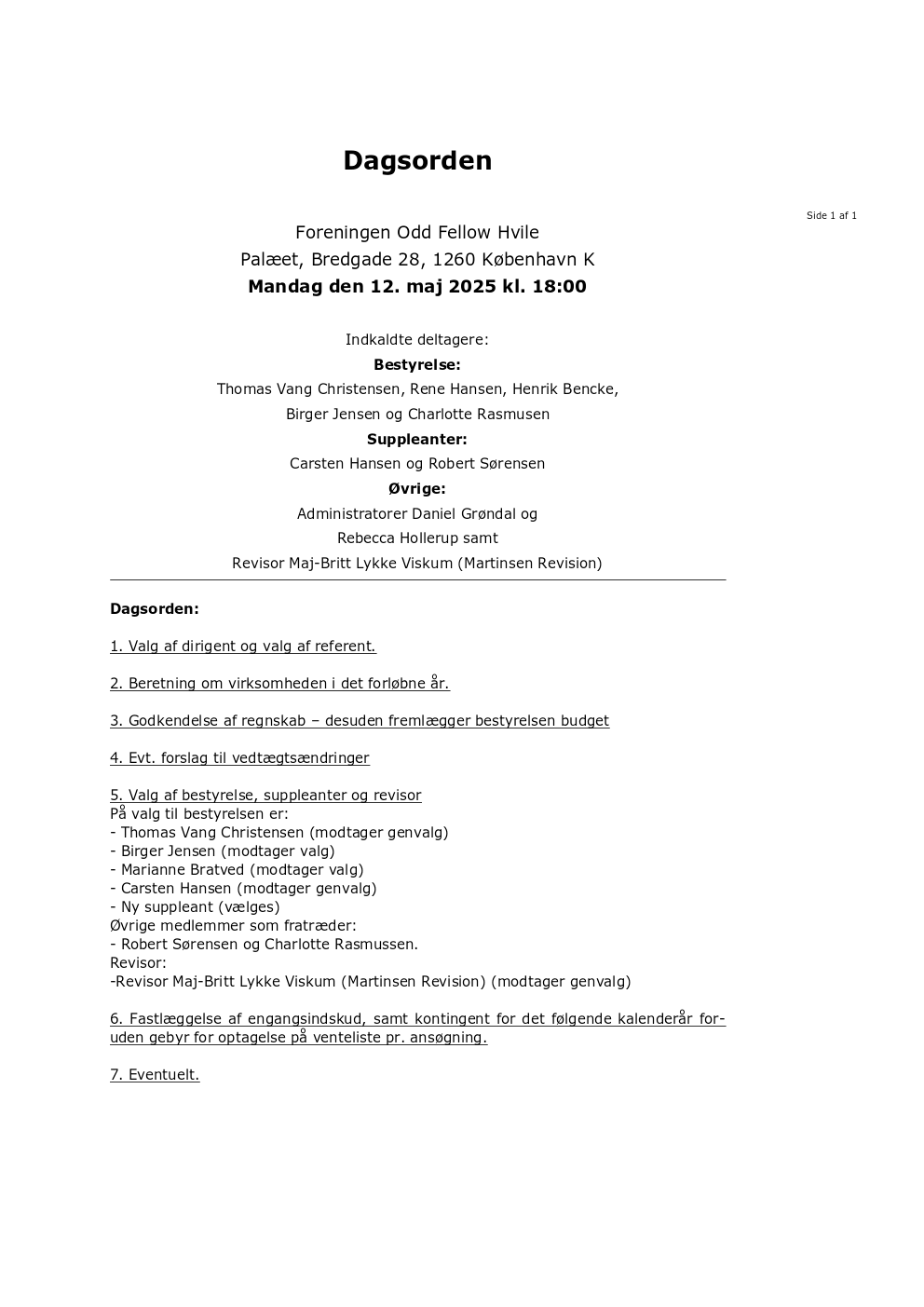 Dagsorden og indkaldelse maj 2024 – Odd Fellow Hvile